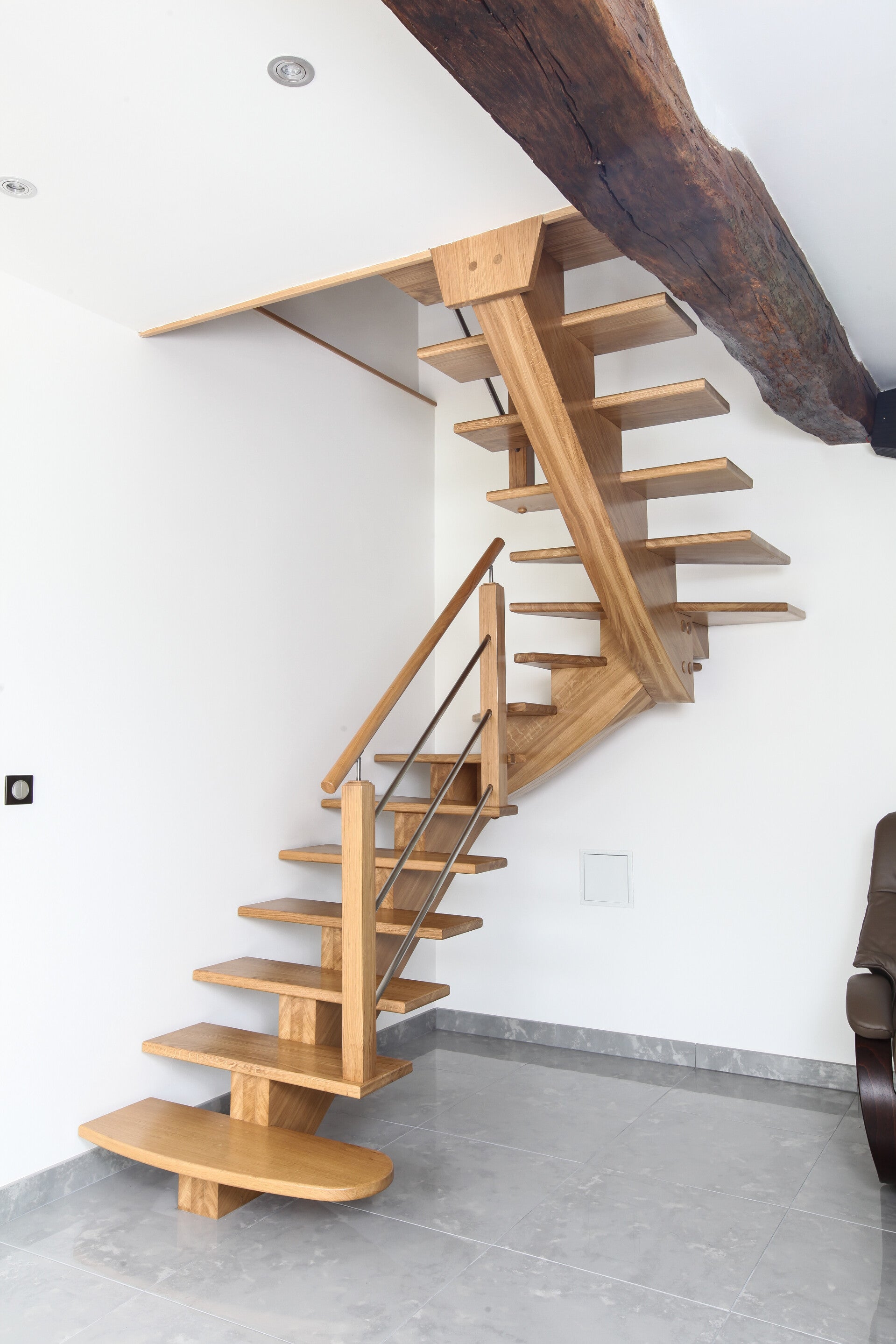 Depuis plus de 75 ans, SIMMAD Escaliers se distingue dans la conception, la fabrication et la pose d’escaliers en bois massif sur mesure. Notre expertise repose sur une tradition de précision remarquable et de qualité supérieure, clés de voûte de chaque projet. L’utilisation de matériaux nobles assure la durabilité et l’élégance de nos escaliers. Notre équipe d’artisans qualifiés maîtrise à la perfection l’art du bois massif, offrant des finitions personnalisées et adaptées aux besoins spécifiques de chaque client. Nos escaliers sont plus que de simples constructions ; ils sont le reflet de notre passion pour le sur-mesure et notre engagement envers l’excellence artisanale. Chez SIMMAD Escaliers, nous honorons notre héritage tout en embrassant l’innovation pour répondre aux attentes modernes.